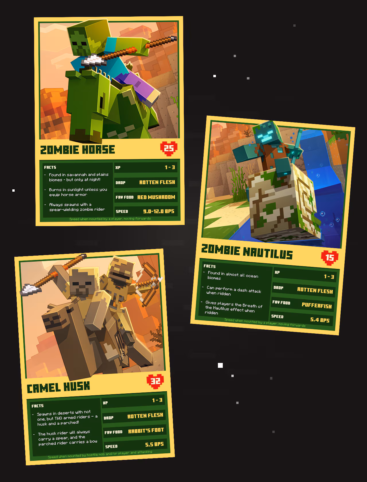 Mounted combat is everywhere in this new update! Explore the deserts to come face to face with the unnerving camel husk, which spawns in with not one, but two hostile foes! Camel husks are ridden by both spear-wielding husks and the parched, a desert skeleton that likes to pepper players with volleys of arrows! Ouch!
